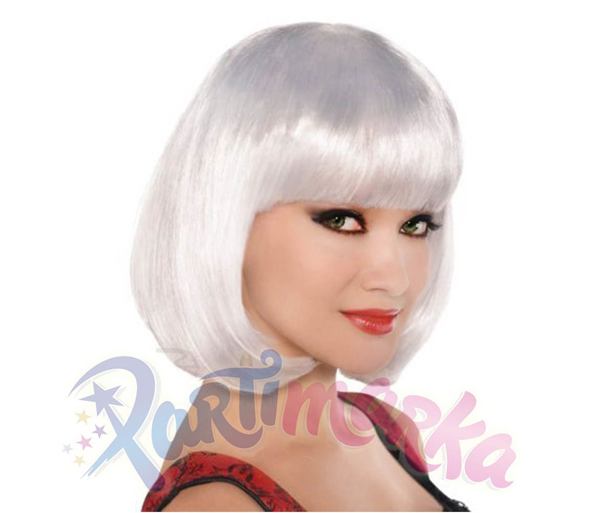 Beyaz renkte kısa küt parti peruğu